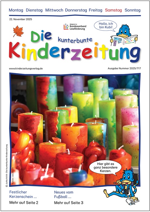 Die kunterbunte Kinderzeitung Ausgabe 2025-717, Festlicher Kerzenschein zum Nachbestellen, inklusive Fragebogen Format: A4 Seiten: 5