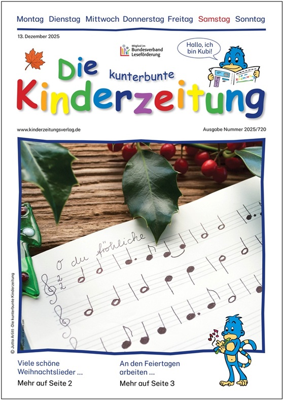 Die kunterbunte Kinderzeitung Ausgabe 2025-720, Viele schöne Weihnachtslieder zum Nachbestellen, inklusive Fragebogen Format: A4 Seiten: 5