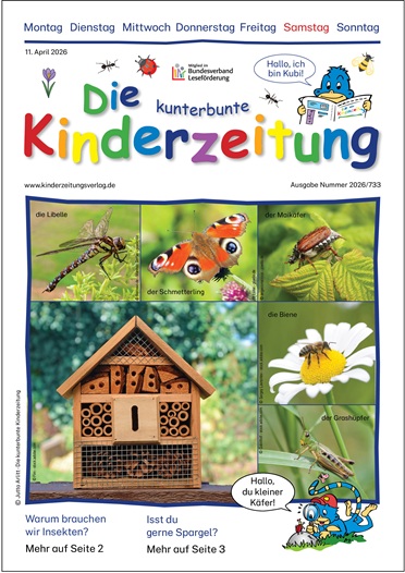 Die kunterbunte Kinderzeitung Ausgabe 2026-733, Warum brauchen wir Insekten? zum Nachbestellen, inklusive Fragebogen Format: A4 Seiten: 5
