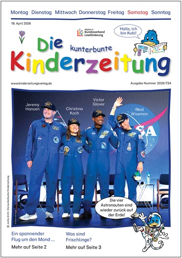 Die kunterbunte Kinderzeitung Ausgabe 2026-734, Ein spannender Flug um den Mond zum Nachbestellen, inklusive Fragebogen Format: A4 Seiten: 5